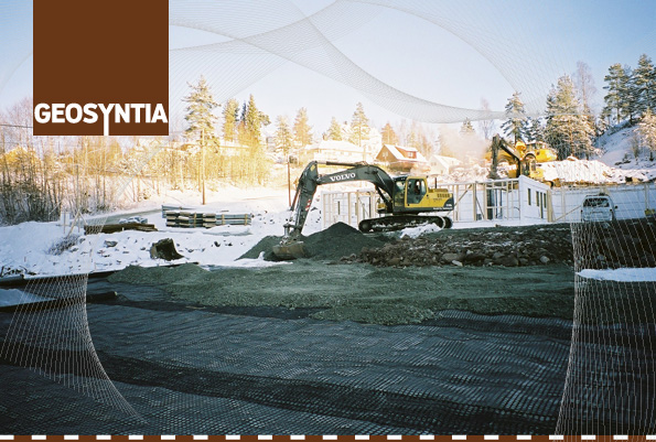 Ved utbygging av boliger på Ekerud i Lørenskog kommune valgte byggherren å bygge ut parkeringsplasser på et område med bløt myr. Plassen ble bygget opp med Spunbond fiberduk som separasjon mot undergrunnen og Fornit geonett 40/40 som forsterkning/armering av forsterkningslag. Geonettet ble brettet opp og inn mellom forsterknings- og bærelag. Dette ga en ekstra sidestøtte