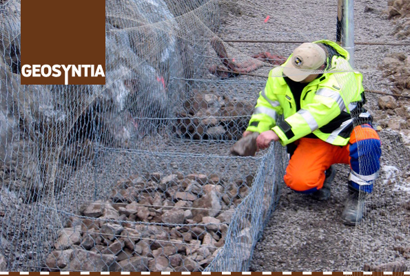 Gabionmur langs Rv, Eidsfoss, Vestfold