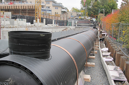 Kontroll med strømmende vann er en nøkkeloppgave i forbindelse med bygging av veier så vel som andre konstruksjoner og anlegg. Geosyntia leverer 2 typer av store DV rør i plast, begge med ringstivhet fra SN2 til SN16.