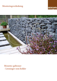 På forespørsel kan Monotec gabioner leveres i rustfritt stål. Som standard leveres Monotec gabioner med tråddiameter på enten 3,55 mm, 4,5 mm eller 5,0 mm samt 6 mm stikklåser. Maskevidden er som standard 100 x 100 mm.