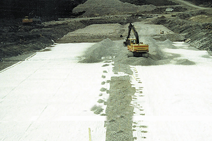 Høystyrkedukene brukes oftest i nedre del av konstruksjonen, mens geonettene egner seg best som bærelagsarmering.